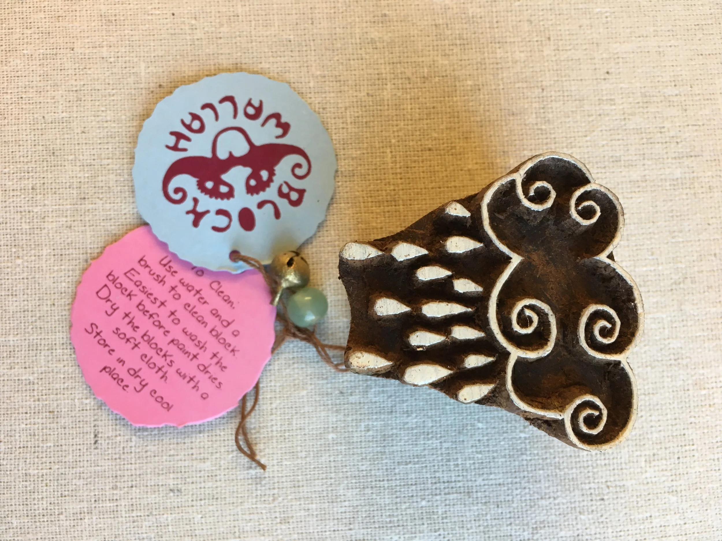 Have you ever thought about block printing on fabric? Check out these cool wood block stamps that are hand carved in India from Indian rosewood by company Blockwallah. We've been carrying these various sized stamps for about a year now and we are so glad. They make us dream of making cocktail napkins with a single stamp in one corner or table runners with imprints all over, there are so many options of what one could do with these. Print on baby onesies or pillowcase cuffs, tote bags or curtains! I could go on and on. Don't forget to pick up some Jaqucard fabric specific paints when printing on fabric. If using on paper, acrylic paint will do and would make for some awesome wrapping paper or handmade thank you cards. Again, the possibilities are endless, not to mention, kiddos would probably have a ball with these. We just got a new shipment, so we have a lot of different options for your choosing. See ya soon!
