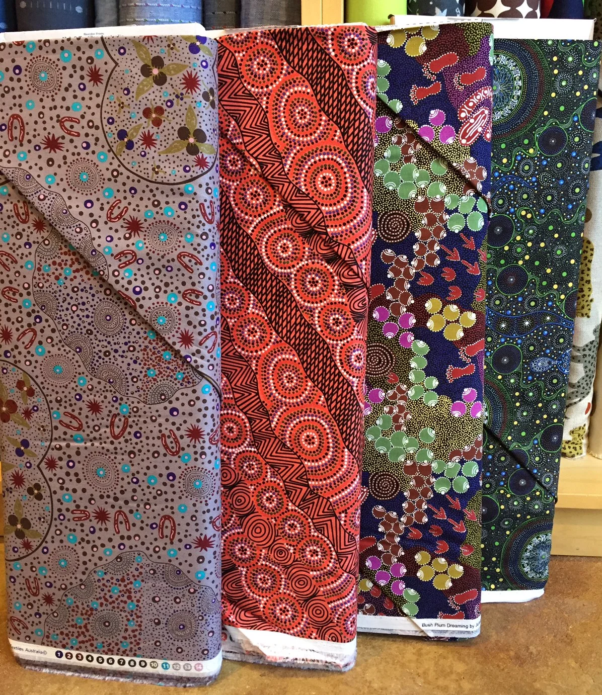 Traditional Aboriginal designs from M & S Textiles on quilting weight cotton, with a lovely, silky hand.