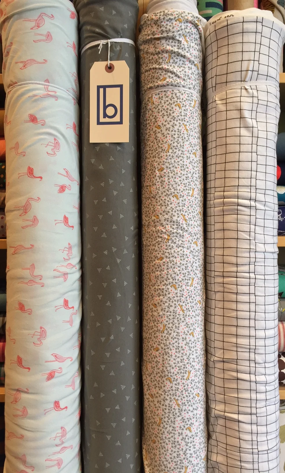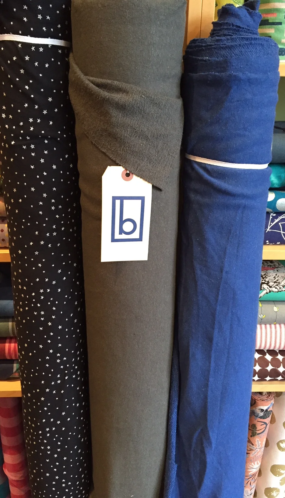 Lots of great new knits have arrived! This grey and blue hemp blend terry is so cozy, perfect for winter chills! And, these sweet prints are fantastic too! Star, flamingos, itty bitty foxes and modern geometric designs...something for everyone.
