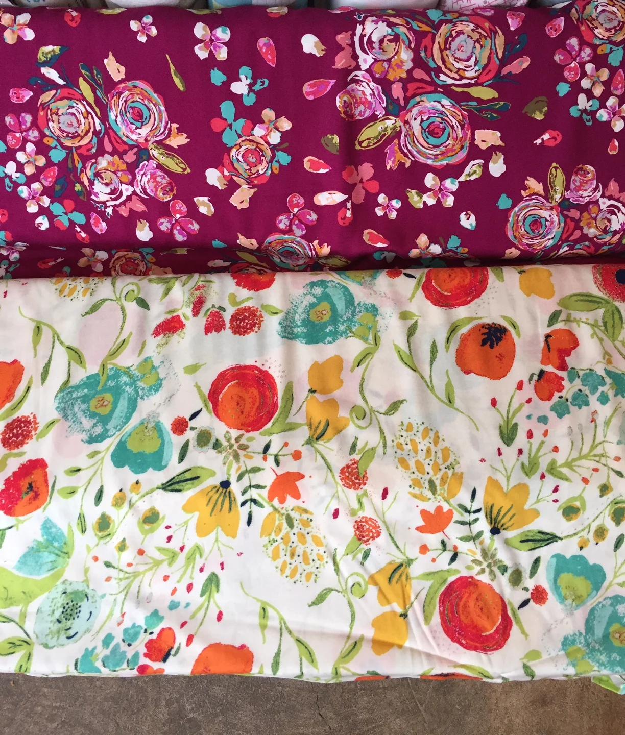 Lush, lush, lush floral rayon prints from Art Gallery. Gorgeous for a blouse or summery dress.