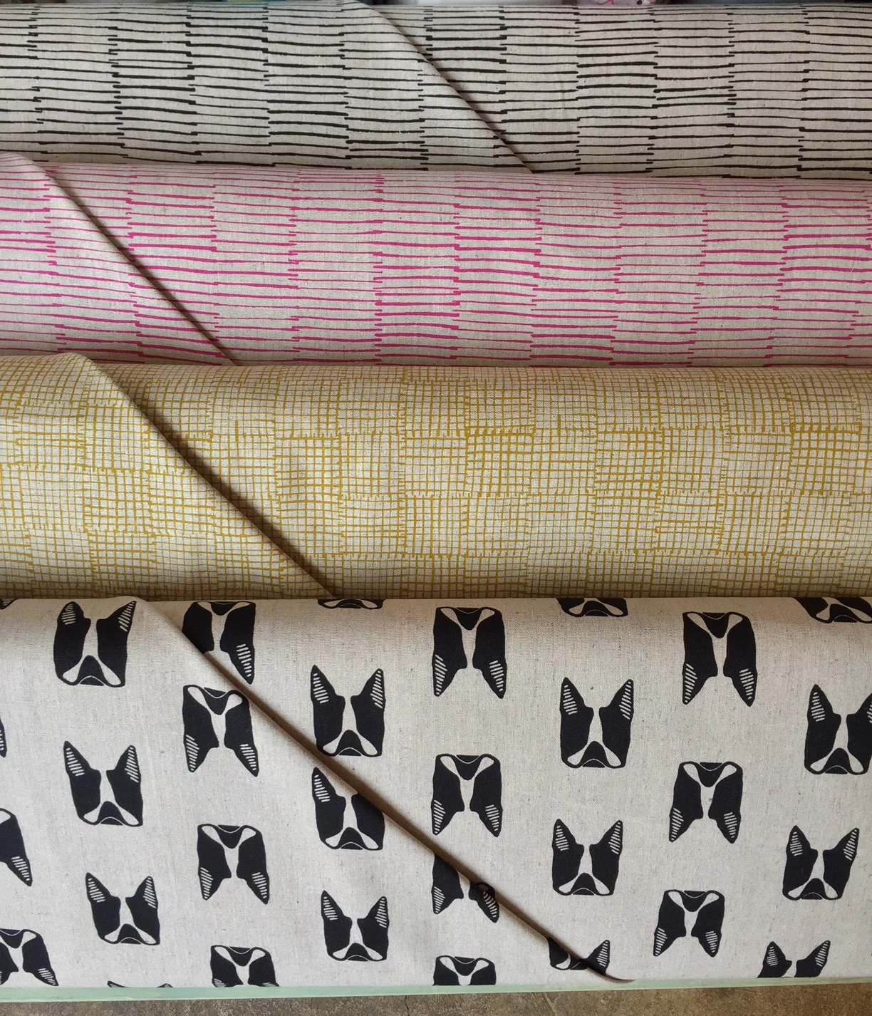 Cute and modern prints on cotton/ linen blend from Andover's "Maker Maker" line by Sarah Golden.