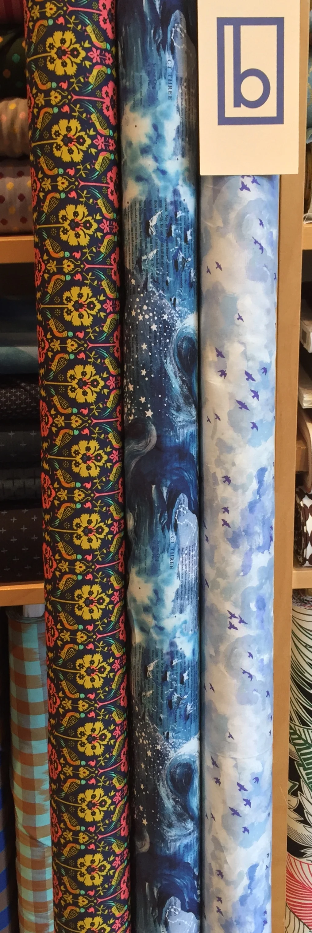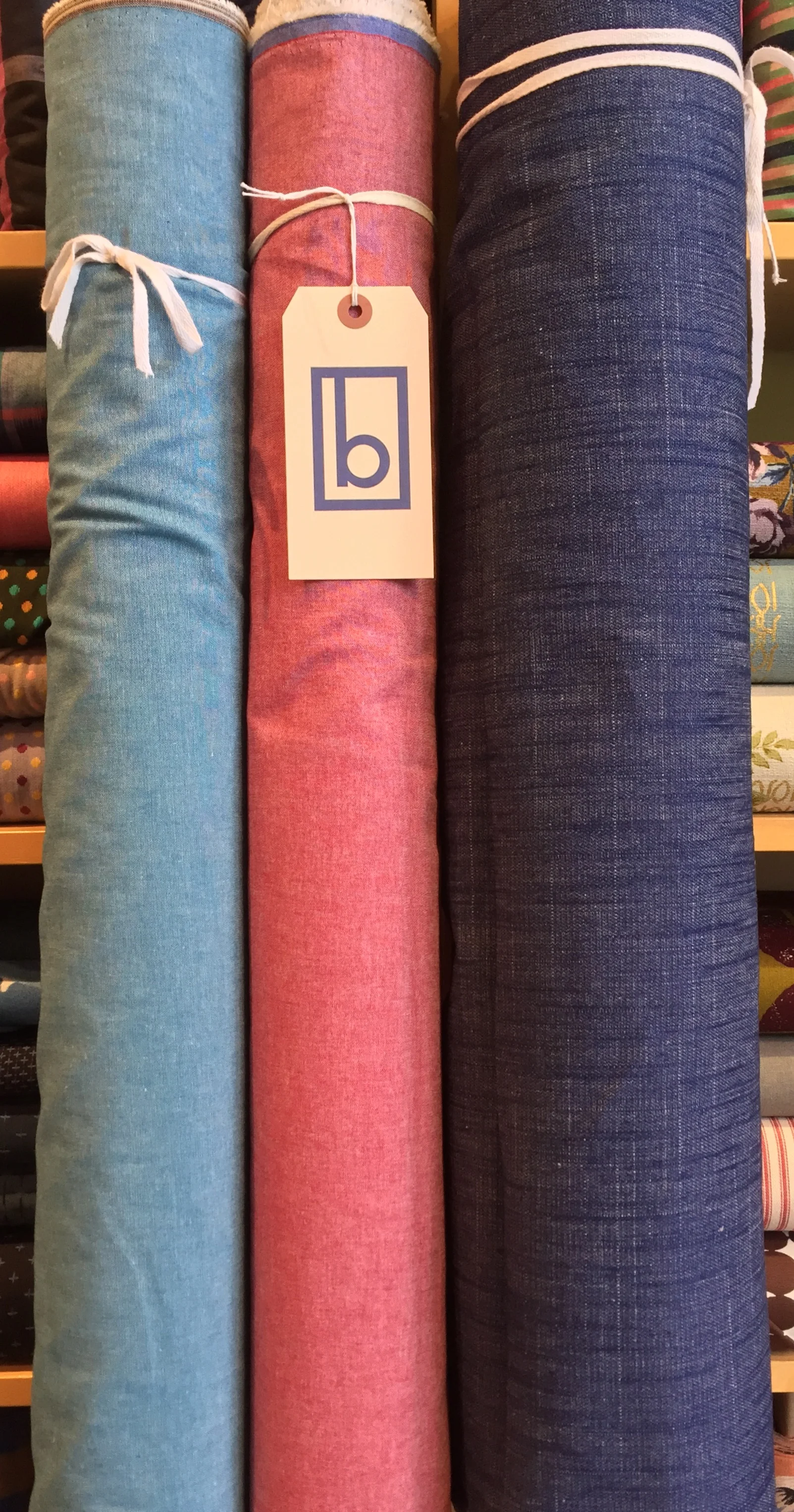 These colored chambrays from Art Gallery are the perfect shirting fabric for spring and the cooler nights of summer. The textured blue denim on the right may end up as some sweet wide legged jeans in my wardrobe.