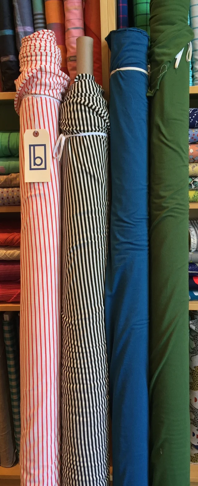 More colors of our favorite solid knit blend (soy, organic cotton, spandex) are here. This blend makes up the silkiest, softest t-shirts, washes and wears beautifully. And, who doesn't love stripes? I'm picturing some boatneck tees in my future!