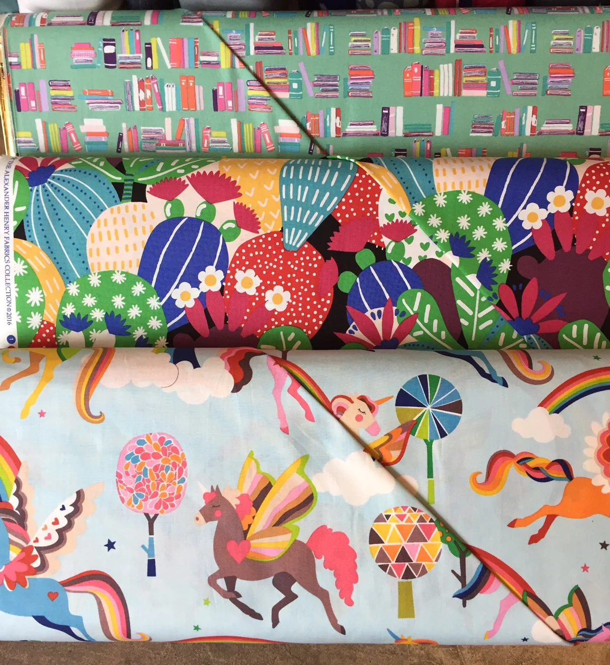 books, colorful cacti and Pegasus with rainbow wings from Alexander Henry