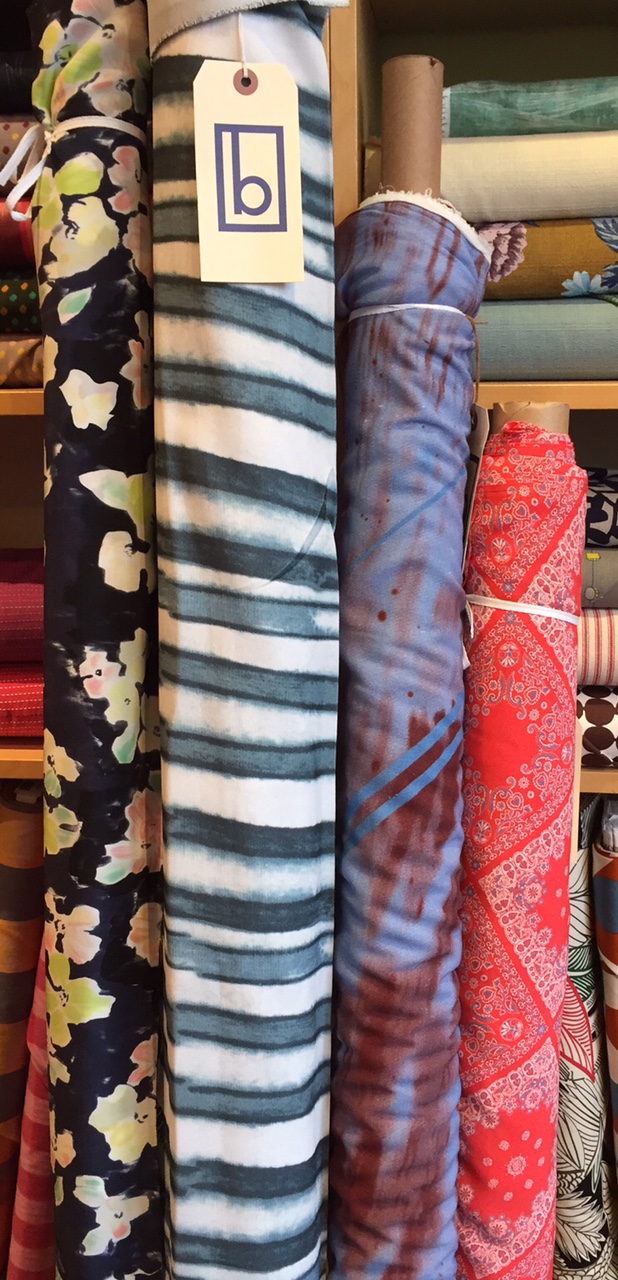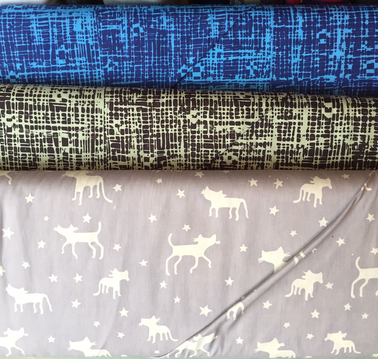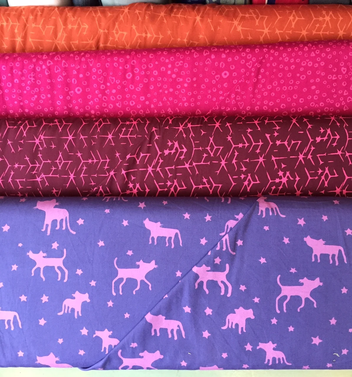 cotton and rayon knits, the three on the right are the plush, soft cotton / stretch blend from Art Gallery that we have been falling in love with.