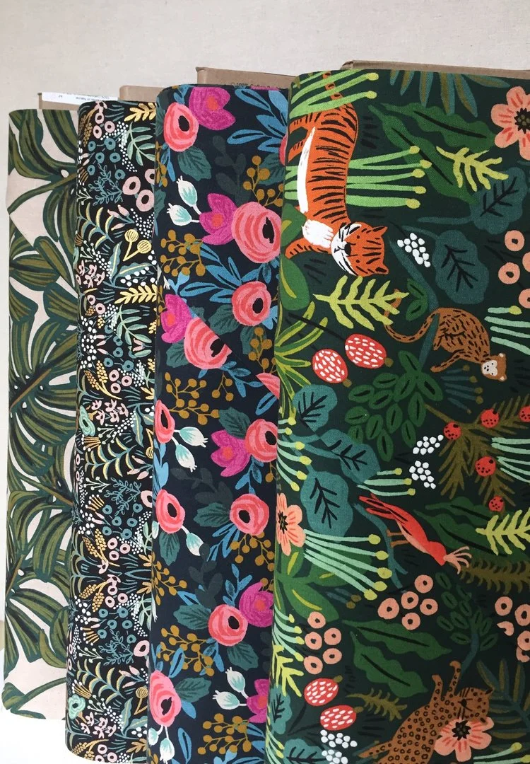 We've also made the brand new Rifle Paper Co. cotton/linen canvas from Cotton + Steel available online. Those tigers! Swoon.