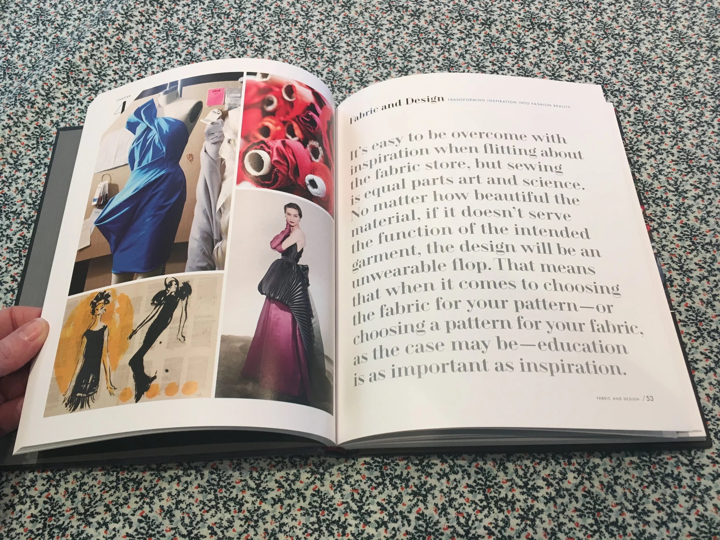 Can you imagine my excitement? Here is a book, beautiful cover to cover, well organized, all about fabric, designing, and full of great tidbits, it literally made my day. I feel like us new age sewing people have been craving a modern fabric resource like this for years, if not decades.
