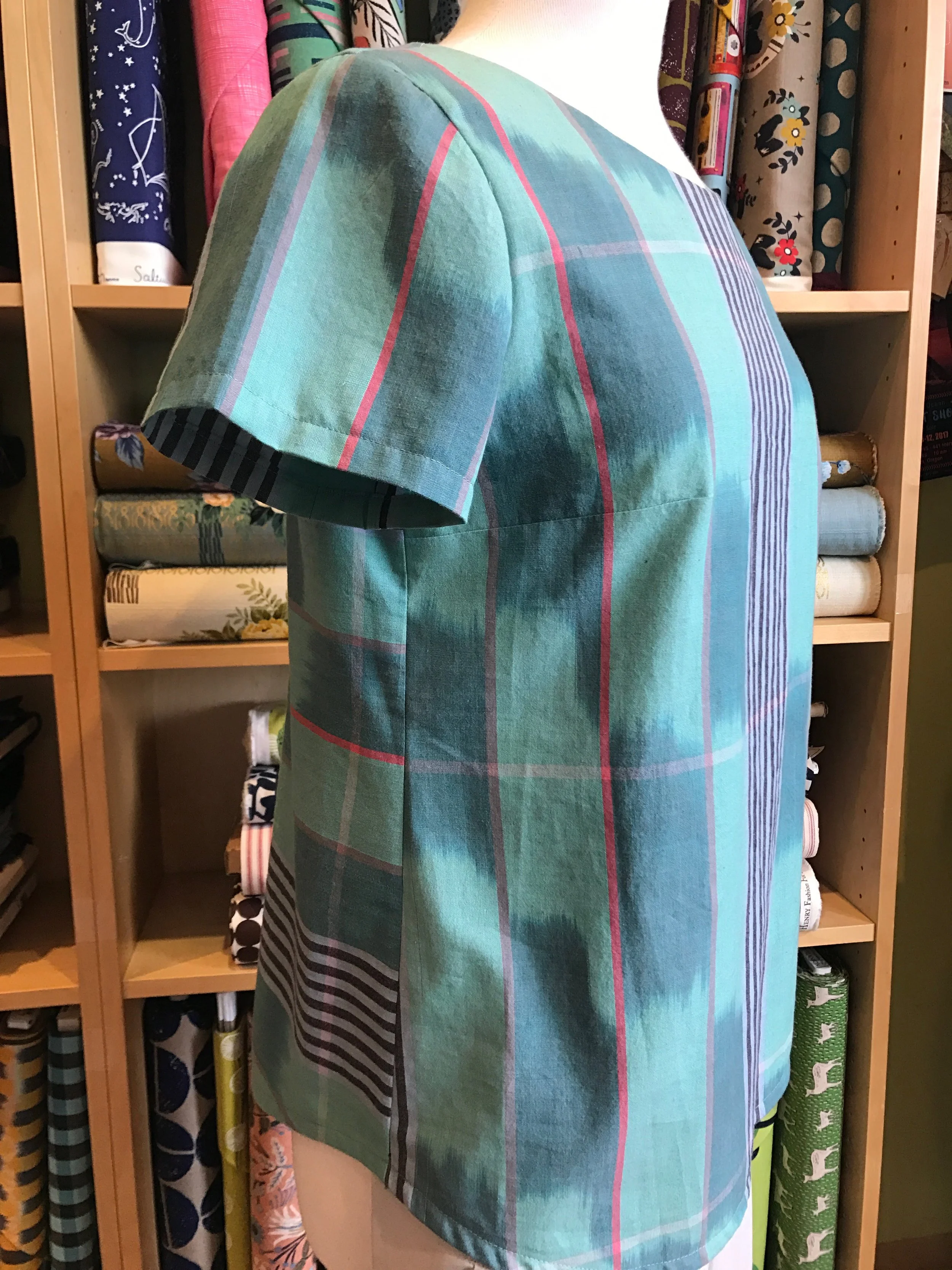 With so many beautiful fabric options to pair with the Beatrix top it was hard to choose, but that gorgeous set of Loominous 2 kept teasing me. These woven beauties range in weight and my choice has a nice lightweight lawn quality to it, perfect for a comfy top. The fabric can come with some tiny imperfections so if you go boldly forward with one of these large plaid-style prints maybe buy an extra 1/4 of a yard to get everything just right. Leftovers would make gorgeous bias tape or additions to a quilt.