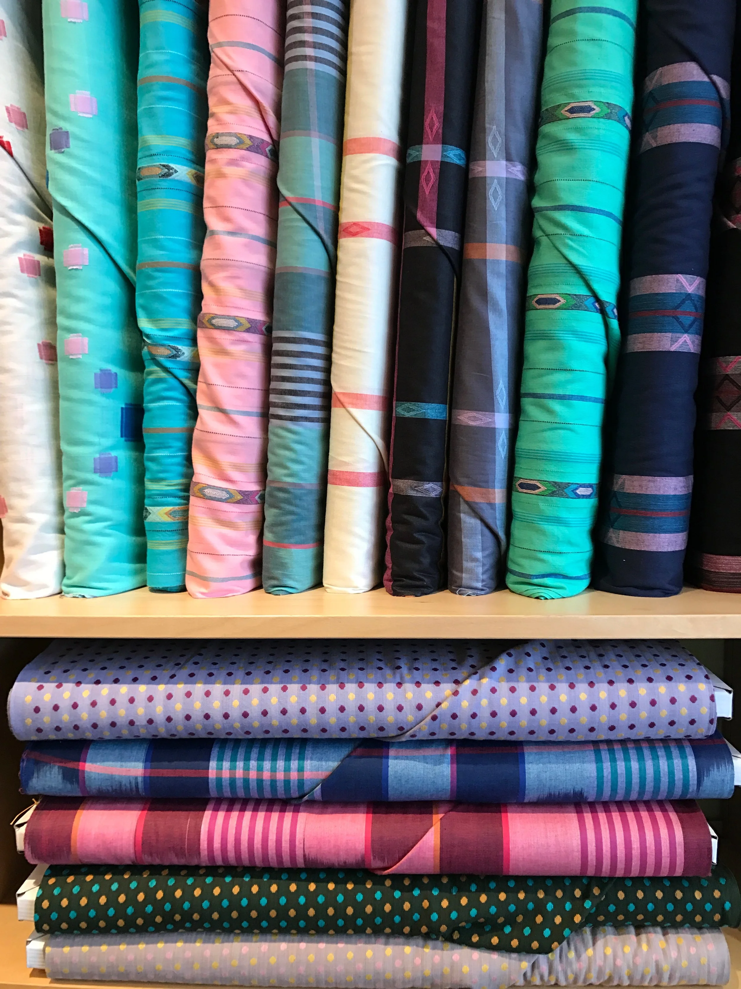 If you want to make up a sweet springtime Beatrix like Jenna's, we have some great fabrics for you. Shot cottons come in every color under the sun and are a great weight for a Beatrix. For a completely different look, we love this baby's breath digital print. Or embrace the season with these colorful raindrops on double gauze.