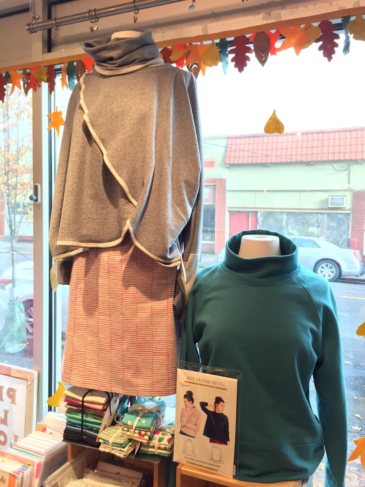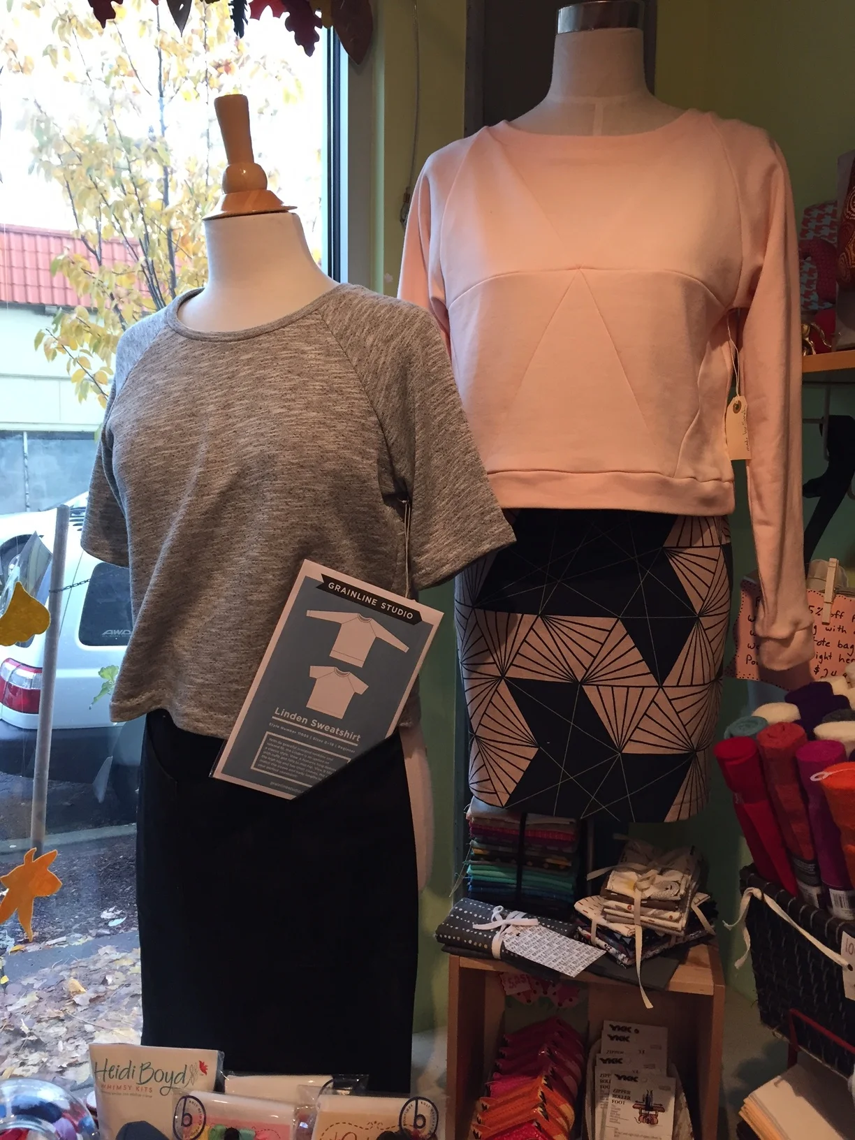 We've recently started a new approach with some of our store samples lately. A couple months back we made up a group of five different skirts from one book. This past month we made up a selection of sweatshirts from a handful of individual, independent patterns. This way you can compare and contrast and see which patterns are the right ones for you!
