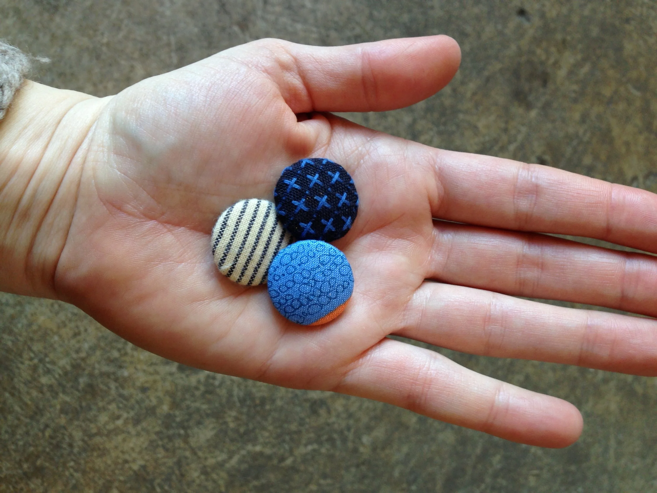 Have you ever tried to pick out buttons and gotten stuck? I know I have. I've put projects on ice for want of the perfect button. If only I had known how easy and fun making covered buttons is! I whipped up these little guys in just a few minutes. It's a great way to use up precious scraps, too.