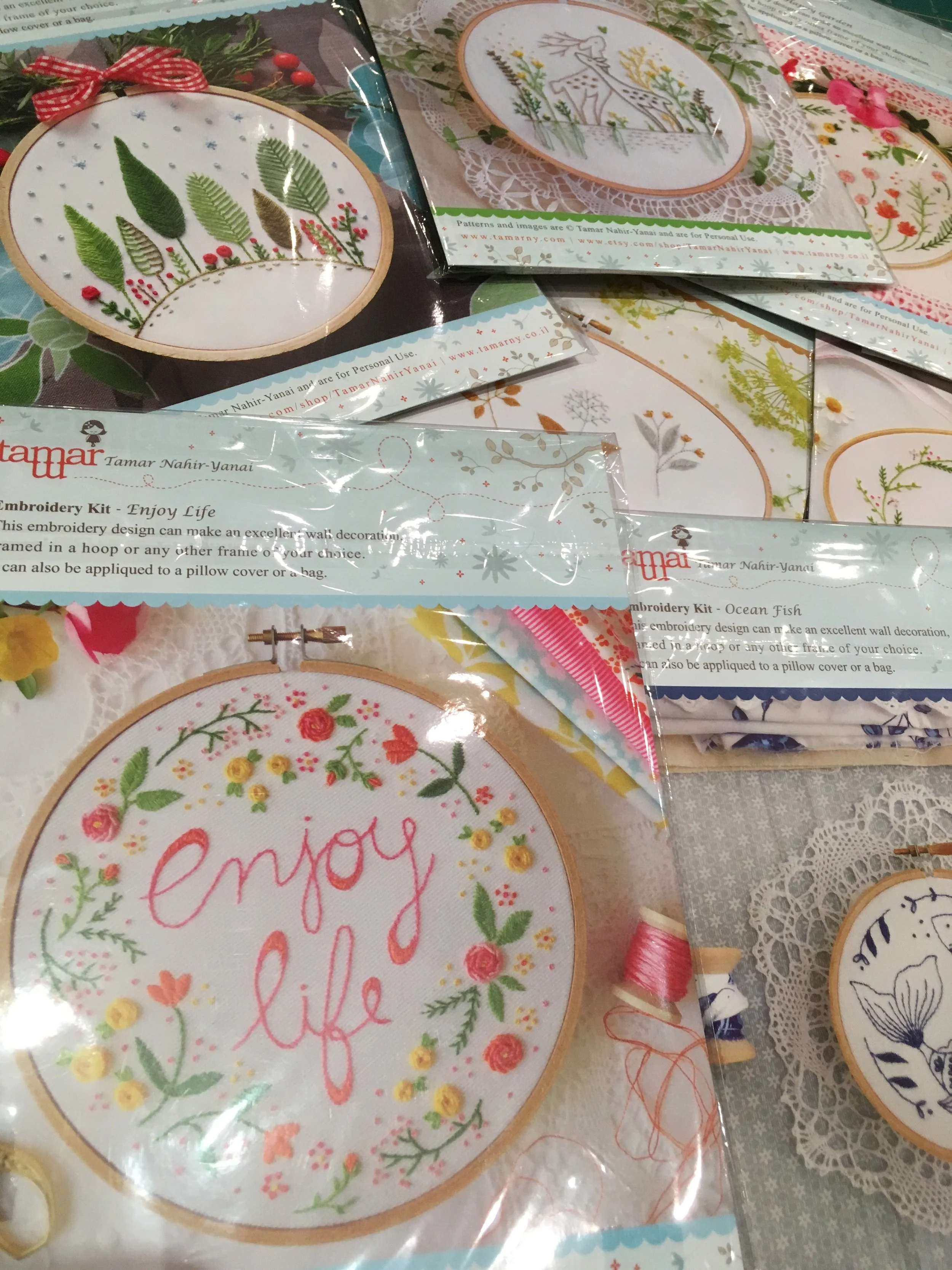 Tamar embroidery kits are fairly new to the shop as we just received our second order and boy are they something. All the designs are original work from Israeli needlepoint artist, Tamar Nahir-Yanai whose aesthetic ranges from kit to kit. One of the many options is sure to strike a chord among those who love to embroider. All stitch instructions are included which makes them great for newbies. They include pretty much all that you need including a single embroidery needle but don't forget to pick up an embroidery hoop to make the stitching easier and provide you with a frame to display your finished work, if you so please. And of course, they make great gifts for a crafty friend or family member. Flipping adorable!
