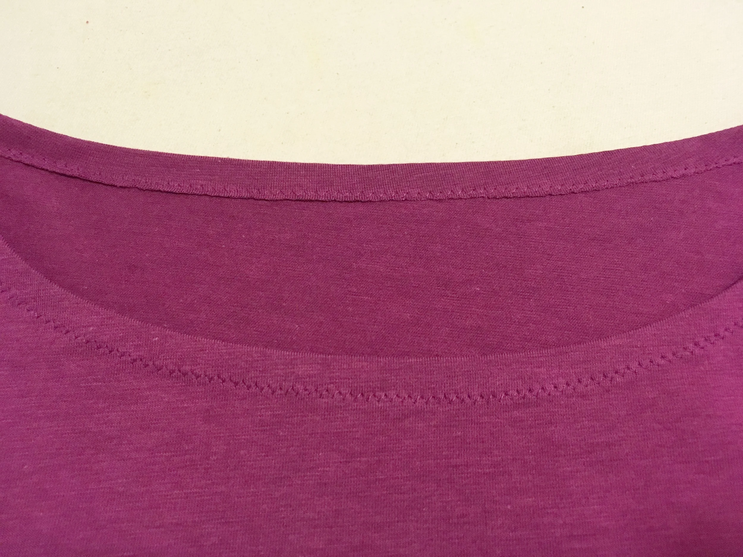 The pattern used here is the Lark by Grainline and is the boatneck version. The instructions have you turn in the raw edge of the neckline and stitch it down, so there's no fussy bands to mess with. I used the same zigzag width setting for this, the hem and the sleeve hem. Voila! That is how you can sew with knits using your sewing machine. It really is a breeze!