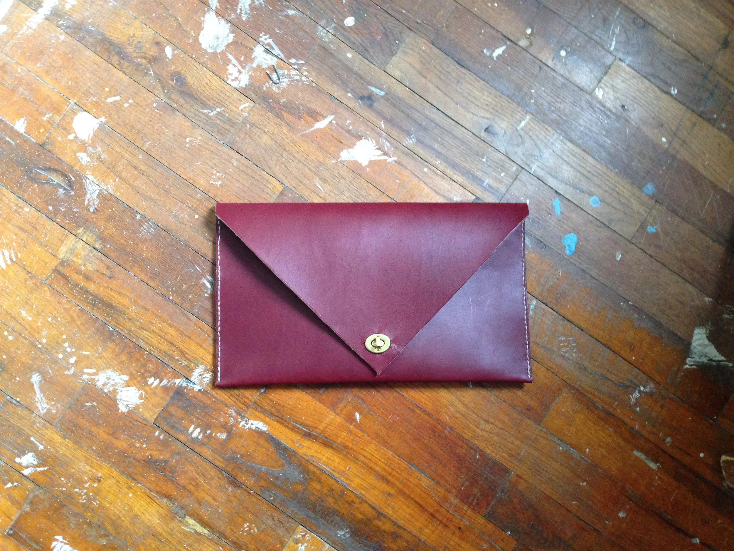 We made a beautiful large envelope clutch. It's a good project for beginners because it's simple but covers many basics. We cut the leather, installed hardware, and hand stitched the seams. After finishing, not only was I totally in love with my elegant purse, but I also felt like I had enough knowledge to work on simple projects of my own devising.