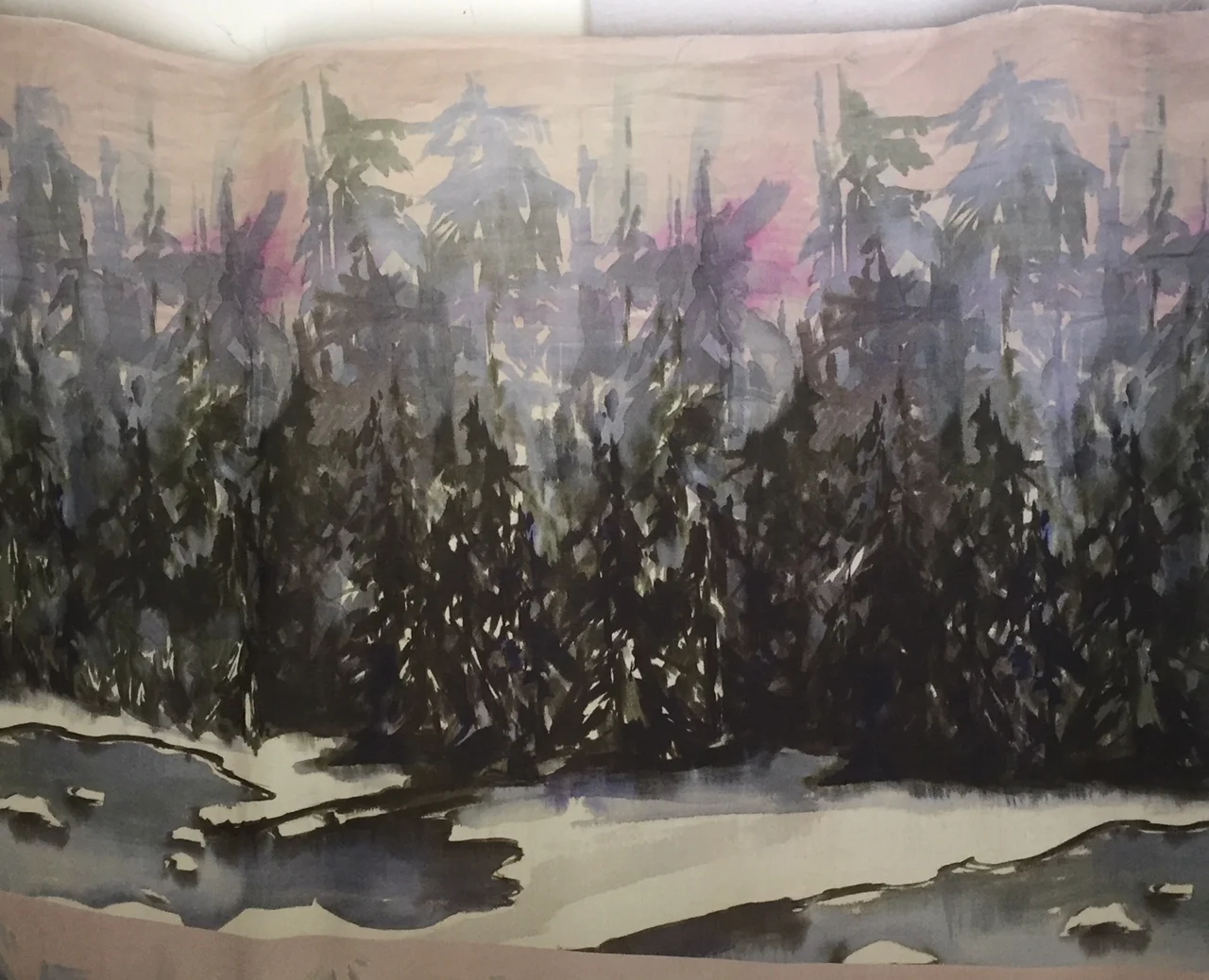 This water color style print on supple wool/ cotton is incredible. The pops of magenta on the otherwise subdued palette make me swoon. This is a panel piece, sold by the 7/8 yard length, not half yard, like all other fabric online. Long enough for a skirt of tunic. So pretty! Check it out online here.