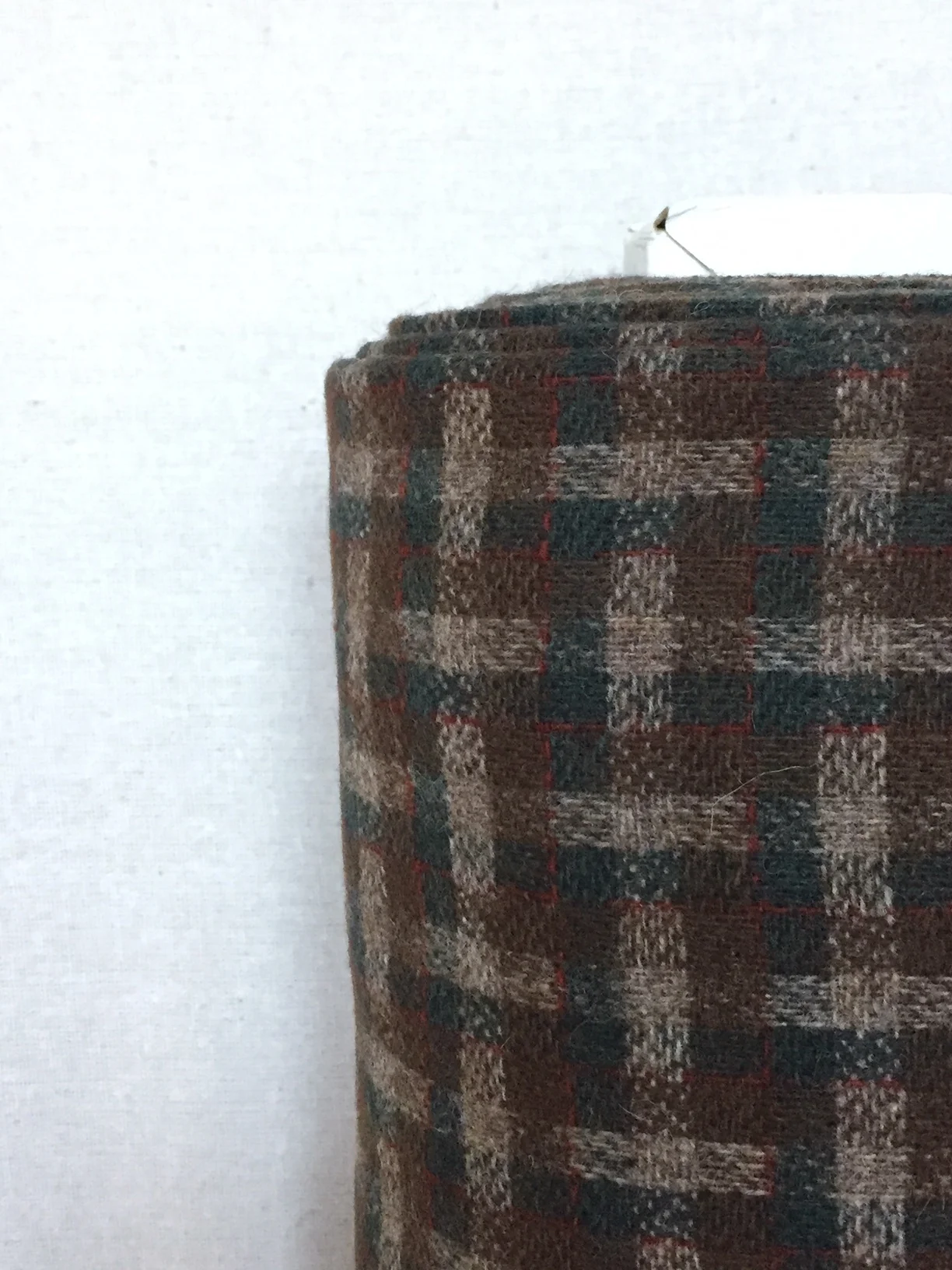 The colors in this basket weave wool blend are lovely--rich brown and dark, hunter green, with the slightest little red line running throughout. This is a gorgeous weight, nice drape, perfect for a coat, or lined skirt. The Milano Cape by Papercut Patterns would be great in this wool! Find the fabric online here.