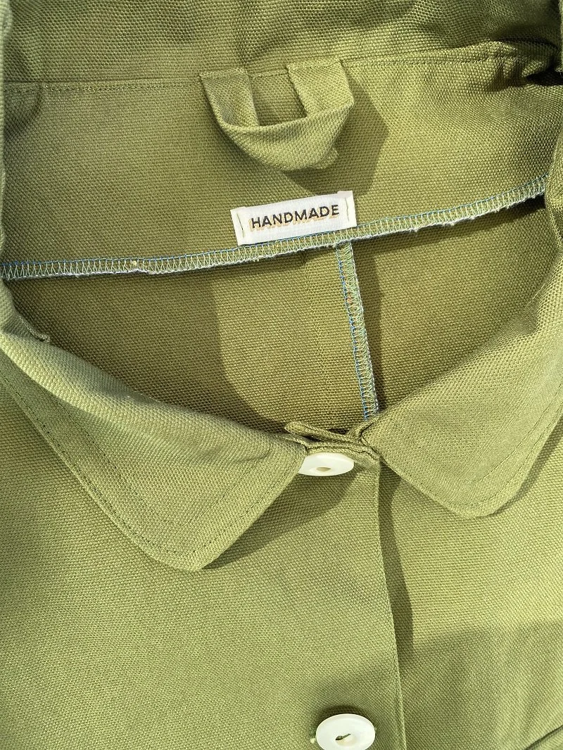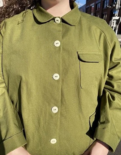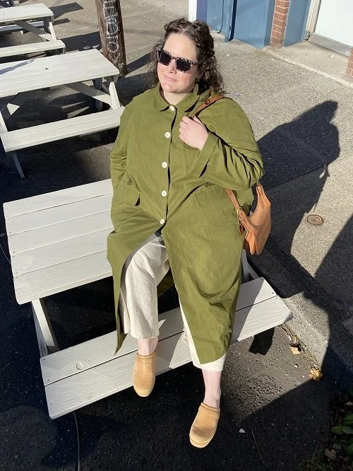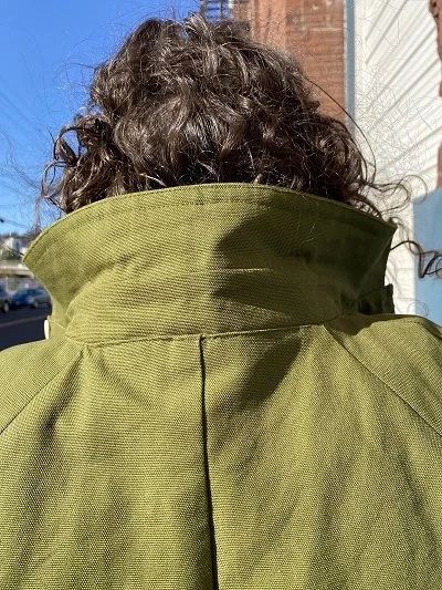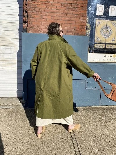 After browsing Bolt’s fabrics I landed on the Robert Kaufman Big Sur Canvas in Moss Green. Wow this is a magical, delicious color and I think it hinted at the retro trench vibes I was imagining for my version. The pictures in the bright sun show it’s true color, but it takes on a darker color with hints of grey when it’s in the shadows.