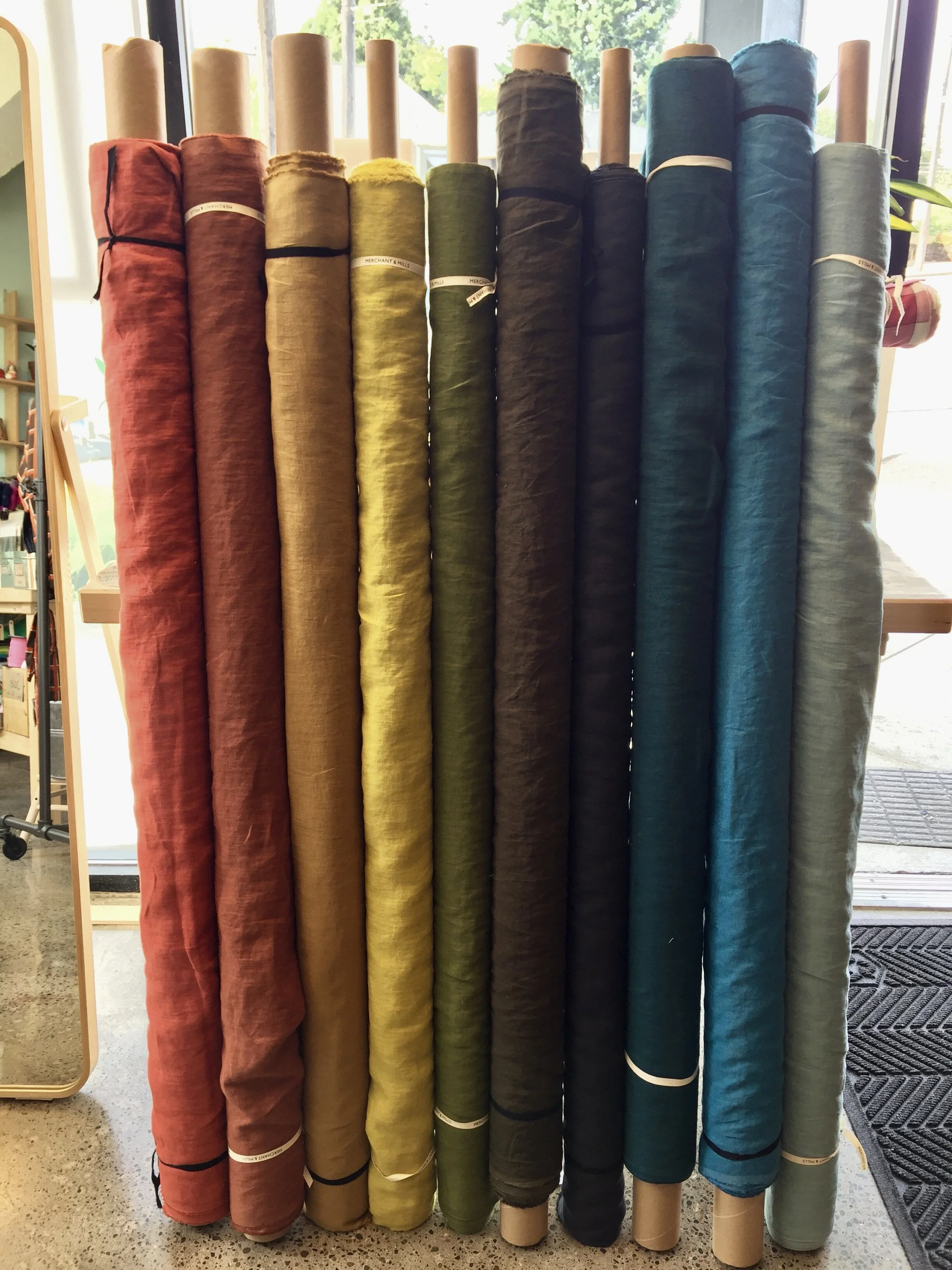 We carry an array of fabrics certified by OEKO-TEX. Sustainable products (including OEKO-TEX certified fabrics) are marked in the shop with orange stickers if they are on bolts and orange twill tape if they are on tubes. Check out the links to the online store for more information about these fabrics!