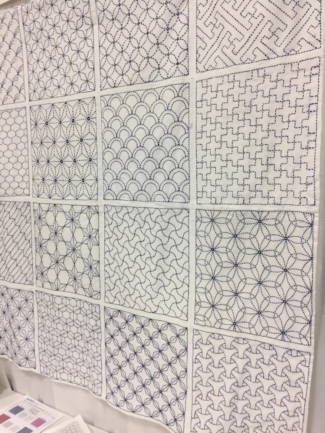 I fell in love with the pieced together sashiko samplers at the Emma Creation booth at Spring Quilt Market.
